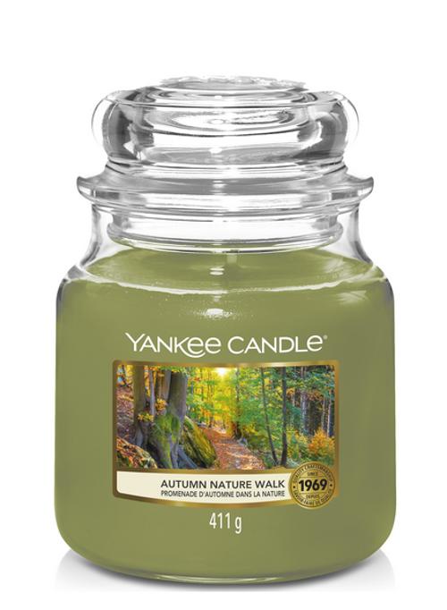 Yankee Candle Autumn Nature Walk Medium Jar doet je denken aan een gezellige herfst wandeling over een fraai volgroeid bos pad. Tijdens deze wandeling geniet je van de geuren van verse herfst bladeren en de geuren van sandelhout, lavendel en laurier. Autumn Nature Walk van Yankee Candle is een mooie herfstgeur die verkrijgbaar is als Large en Medium Candle. Yankee Candle Autumn Nature Walk is afkomstig uit de geur groep Woody. Samenstelling geuren: Top : Bergamot, Laurierblad, Marine Accord. Mid : Blauwe Mos, Cederblad, Lavendel Basis: Vetiver, Tonkaboon, Sandelhout