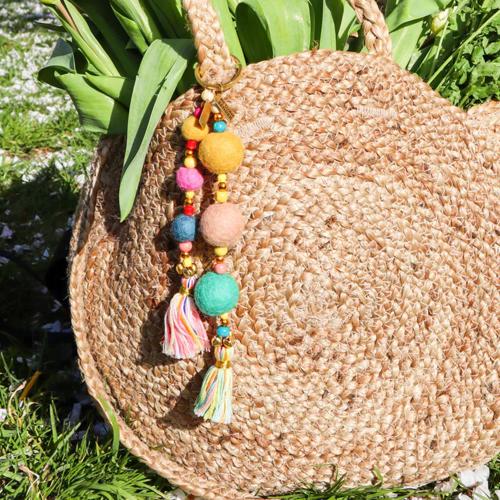 Met deze opvallende sleutelhanger ben jij je sleutelbos nooit meer kwijt! Deze kleurrijke sleutelhanger is gemaakt van vilt, kraaltjes en belletjes. Afmeting: 1,5 cm x 19 cm