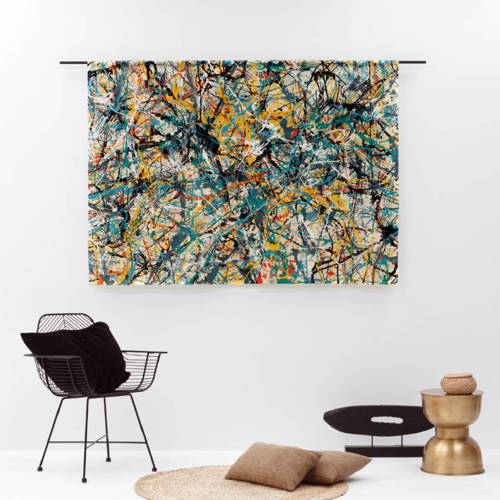 Mr. Hyde, de ontwerper van het wandkleed Lavoro N1, is onderdeel van de NDSM-open collectie. NDSM, een oude scheepswerf aan de waterkant in Amsterdam Noord. Dit werk kenmerkt zich door een dynamische schilderstijl met een rijkheid aan actie.