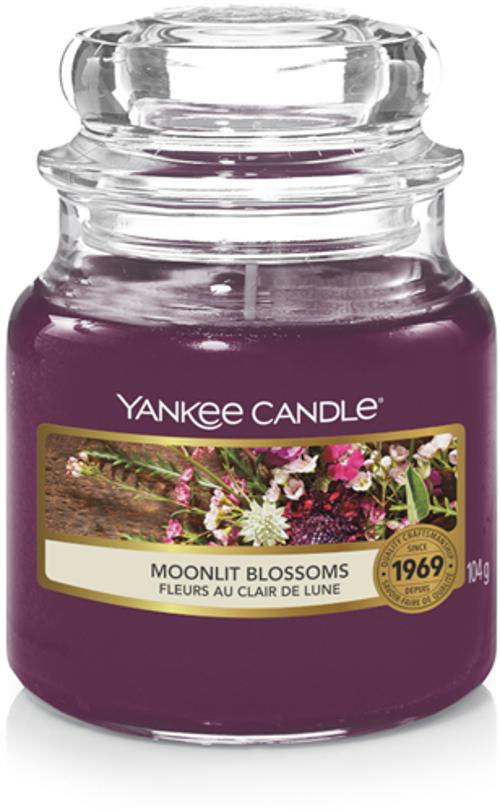 Yankee Candle Moonlit Blossoms is een fruitige geur. De topnoten zijn granaatappel en braambes. De midden- en topnoten zijn jasmijn, ylang-ylang en lavendel. De basisnoten zijn amber en witte muskus.