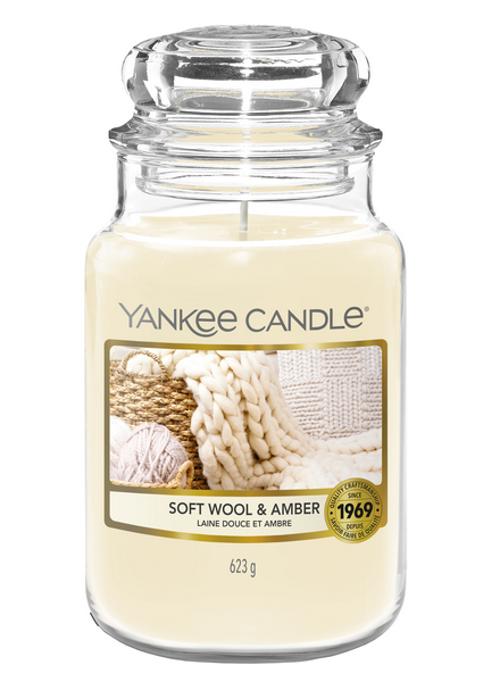 Yankee Candle Soft Wool & Amber Large Jar is een luxe aangename rustgevende geur. Ga zitten een voorzie je zelf van een prettige zacht dekentje, hierbij kom je even helemaal tot rust met de geuren van jasmijn, cashmere en witte amber. Soft Wool & Amber van Yankee Candle is hier mee een zacht frisse luxe geur die zal zorgen voor heerlijke avonden geur genot.