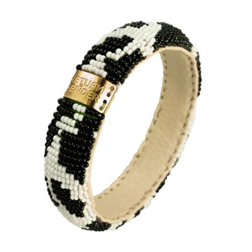 Deze handgemaakte zwart witte armband met giraf design uit Mali is stoer en toch vrouwelijk, met een uniek design. De zwarte armband is van skai (nepleer) en kralen gemaakt. Met deze kralen armband maak jij je outfit helemaal af! Ontworpen door Laura de Monchy - echt Dutch design! Afmeting: 2,2 cm brede armband met kralen, diameter tussen de 6,5 en 7 cm.