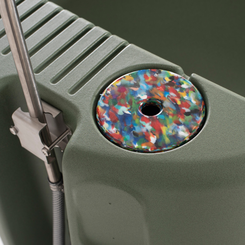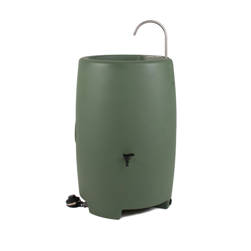 De Raintap tovert een regenton om in een veelzijdig buitenwaterstation. De kraan (en eventuele freshwatertap), voetpomp en spoelbak maken het tot een slim waterstation en verandert het van regenton, naar (hand)wasplaats, naar een compacte buitenkeuken.
