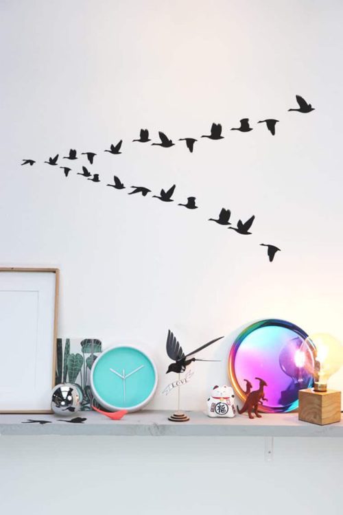 Deze zwarte papieren decoratieset bevat 26 easy-to-use ganzen silhouetten in verschillende maten van 4 tot 8,5 cm & sticker dots. Je haalt ze gemakkelijk uit de template, plak een sticker dot achterop en plak ze in een V-vorm op je muur! 🙂