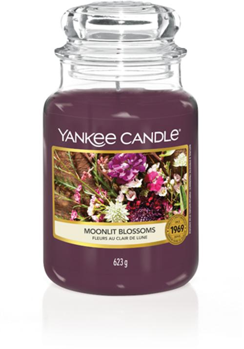 Yankee Candle Moonlit Blossoms is een fruitige geur. De topnoten zijn granaatappel en braambes. De midden- en topnoten zijn jasmijn, ylang-ylang en lavendel. De basisnoten zijn amber en witte muskus.