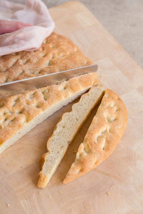 1. Voeg 240 ml water toe aan de mix en kneed dit minimaal 10 minuten met de hand of keukenmachine. 2. Maak een mooie bol van het deeg, vet in met 10 ml olijfolie en leg dit in een schaal met een theedoek erover. Laat het deeg 40 minuten rijzen op kamertemperatuur. 3. Bedek de bakplaat met bakpapier en leg hierop het deeg in de gewenste vorm, ongeveer 2 cm dik. 4. Vet het deeg opnieuw in met de overige olijfolie, prik met je vingertoppen flink wat gaatjes in het deeg en laat wederom 45 minuten rijzen op kamertemperatuur. 5. Verwarm de oven op 240 graden, plaats de bakplaat in het midden van de oven en bak het deeg 20 –30 minuten gaar. (baktijden zijn richtlijnen en kunnen per type oven variëren) Tip Lekker met een topping van bijvoorbeeld grof zeezout, olijven, tomaten of kaas. Voeg de topping toe, en bak het brood vervolgens af!