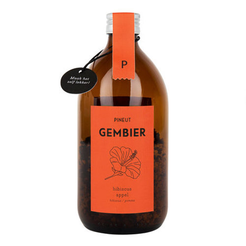 Gembier van Pineut. Dat is één fles met uitgebalanceerde ingrediënten. Hét recept voor vier tot zes glazen doe-het-zelf gember soda. In 3 leuke stappen. 1. Voeg de mix toe aan 1,5 liter water. Kook tot de helft is verdampt. Filter de gembierbasis met een zeef of kaasdoek. 2. Zet weer op het vuur en los 150 gram rietsuiker of agavesiroop op. Laat de gembierbasis afkoelen en giet terug in de fles. 3. Serveer. Mix één deel gembier met één deel bruisend water. Tip Liever iets minder pit(tig)? Voeg wat extra bruisend water toe.