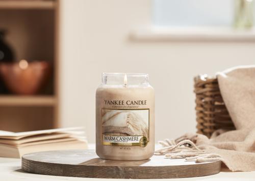 Yankee Candle Warm Cashmere Large Jar is een heerlijke geur mix van zonnige oranje kasjmierhout, gouden amber, kardemom, sandelhout, muskus, witte patchoulie en franse vanille. De Warm Cashmere van Yankee Candle is een geur waar je snel verliefd op zal worden, de Warm Cashmere is perfect voor het creëren van een gezellige sfeer. Top : Zongerijpte Sinaasappel Mid : Gouden Amber, Kasjmierhout, Kardemom