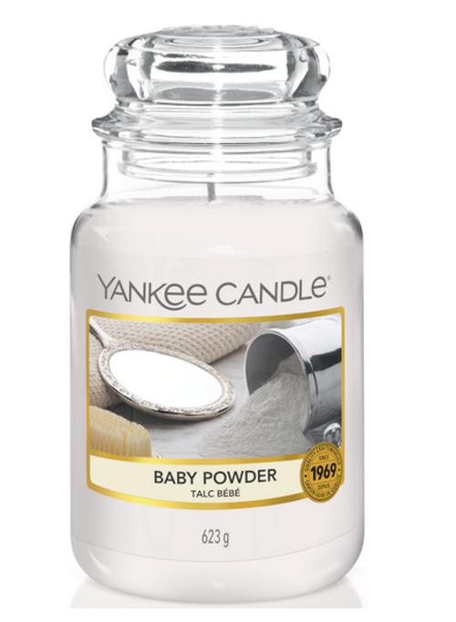 Yankee Candle Baby Powder Large Jar is een heerlijke frisse geur die de geest even helemaal tot rust zal brengen. Baby powder van Yankee Candle neemt je dan ook mee naar je kindertijd, de geur van een pasgeboren baby. Al jaren lang is de Baby Powder van Yankee Candle één van de meest verkocht geuren, en dat is natuurlijk niet voor niets. Yankee Candle Baby Powder is afkomstig uit de geur groep Fresh. Samenstelling geuren: Top : Amandelmeel Mid : Bloemen Basis: Cumarine, Muskus Zorg er altijd voor dat de kaars lang genoeg brandt om de gehele bovenlaag te laten smelten. Hiermee voorkom je kuilen in de kaars en daar door zal deze langer en mooier branden.